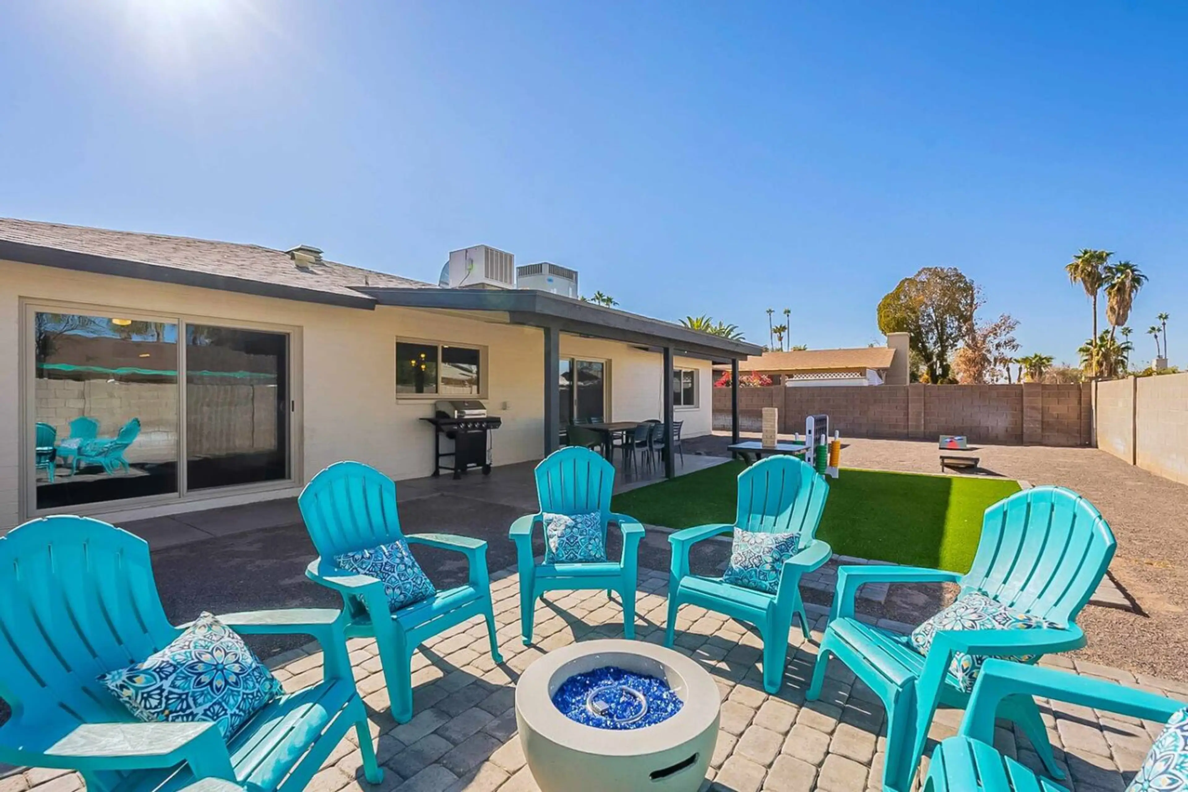 Fabulous Tempe location! Close to everything - ASU, airport, Downtown Tempe, 101, 202 & 60 Freeways, Scottsdale, Spring Training and more. Brand new remodel. 4 bedrooms all w/ king beds. Large yard features BBQ, fire pit, Jenga, Connect Four, cornhole and outdoor dining for 8. 4 Roku Smart TVs. ...